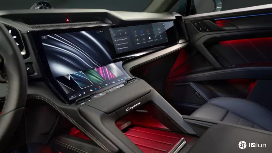 Cayenne Electric的内饰核心是三屏幕配置。驾驶座前方配备14.25英寸OLED全部码仪表板,采用曲面设计集成于仪表台内,显示车辆资讯及导航数据。 中控台设有14.9英寸触摸屏幕“Flow Display”,运行Porsche最新PCM 7.0 (Porsche Communication Management) 系统,控制车辆设置、多媒体及气候功能。副驾驶座前方另设14.9英寸娱乐屏幕,让乘客可独立操作娱乐功能或查看行程资讯,而驾驶者无法查看该屏幕内容以确保行车安全。