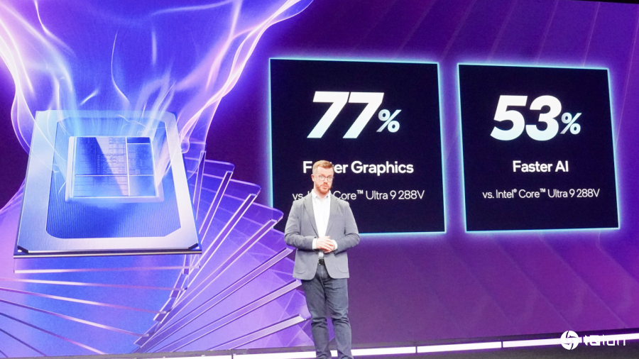 Arc B390与前代Lunar Lake的“满血版”内置显示芯片相比游戏性能提升77%,ai运算性能则提升53%。