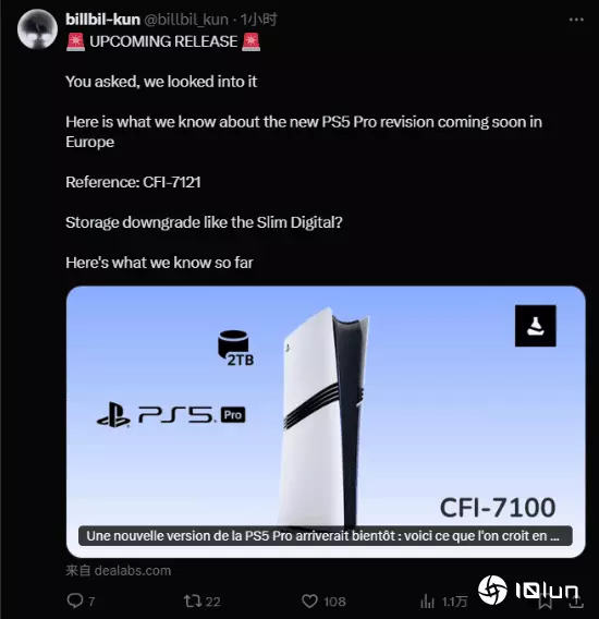 根据爆料人士billbil-kun在Dealabs发布报告指,新款PS5 Pro CFI-7121的外观和手感会与现有版本完全一致,并确认不会推出“轻薄版”设计。新版本将保留2TB SSD存储容量,售价也维持在799.99欧元(约港币HK$6,784),与现有版本相同。