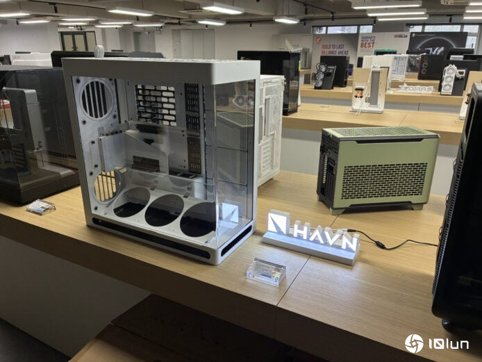 DIY产品会有特色机箱现品展出,包括最新的ROG Strix Helios II初音未来特别版、MSI的PANO 130R MLG EDITION、HAVN斜装HS420 VGPU Edition等,另有众多曲屏AIO水冷。