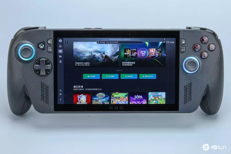 ROG Xbox Ally系列采用了7英寸FHD液晶屏幕,支持120 Hz刷新率与AMD FreeSync Premium技术,并搭配康宁Gorilla Glass Victus强化玻璃与DXC抗反射镀膜,不过若与今年度的掌机相比,这样的面板尺寸略为保守,也没有提供OLED的选项。除了机身颜色差异外,两款新机在外观、尺寸上完全一致,基本延续了ROG前代掌机的设计词汇,但握柄则进行了大幅修改,能兼顾握持的舒适度与操作精度,并在可携性与重量下取得务实的平衡,也反映出Xbox对“游玩体验”的优先考量。