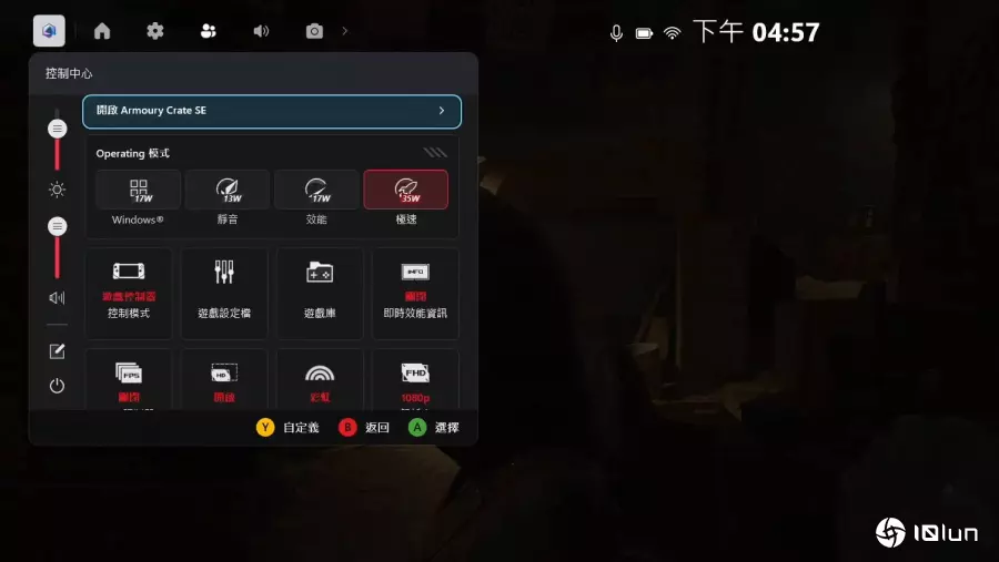 除了集成Windows 11的Game Bar功能外,ROG仍保留了专为Ally系列掌机设计的“控制中心”,并在机身上配置专属快捷键,让玩家能快速调用。为了提升使用便利性,ROG也将Armoury Crate SE的快捷开关与Game Bar进行集成,减少在不同界面之间切换的繁琐操作。并将设备中各项常用功能设置集中于单一页面,例如性能监控、屏幕色彩场景模式等,并能依个人习惯自订快捷开关的布局,若需进一步掌握性能与节能设置,则可通过Armoury Crate SE应用程序进行深入调校。