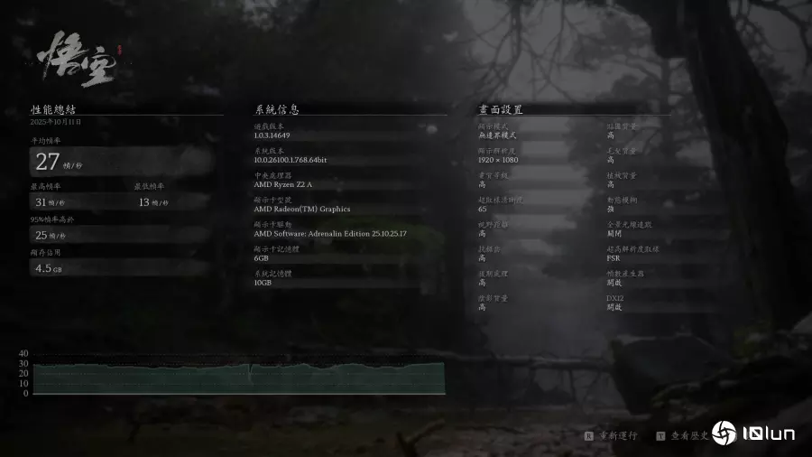以《黑神话:悟空性能测试工具》进行测试,于画质等级“低”时,平均帧率可达42帧/秒。