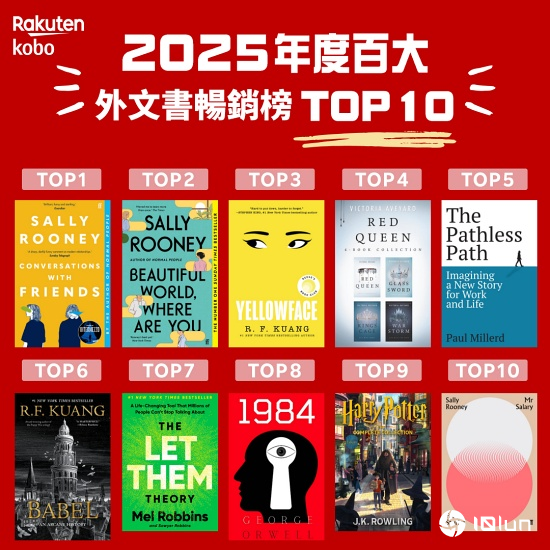 而在台湾外文小说榜单中,前5名依次为《Conversations with Friends》和《Beautiful World, Where Are You》关注友情、爱情与成年后的迷惘,强调心理共鸣与人际互动;《Yellowface》通过讽刺小说,探讨文化、种族及身份认同,引发对社会议题的思考;《Red Queen 4-Book Collection》以悬疑故事呈现权力斗争与自我突破,满足冒险与想象需求;《The Pathless Path》则聚焦非传统人生选择与自由职业生涯,鼓励自我探索与反思。