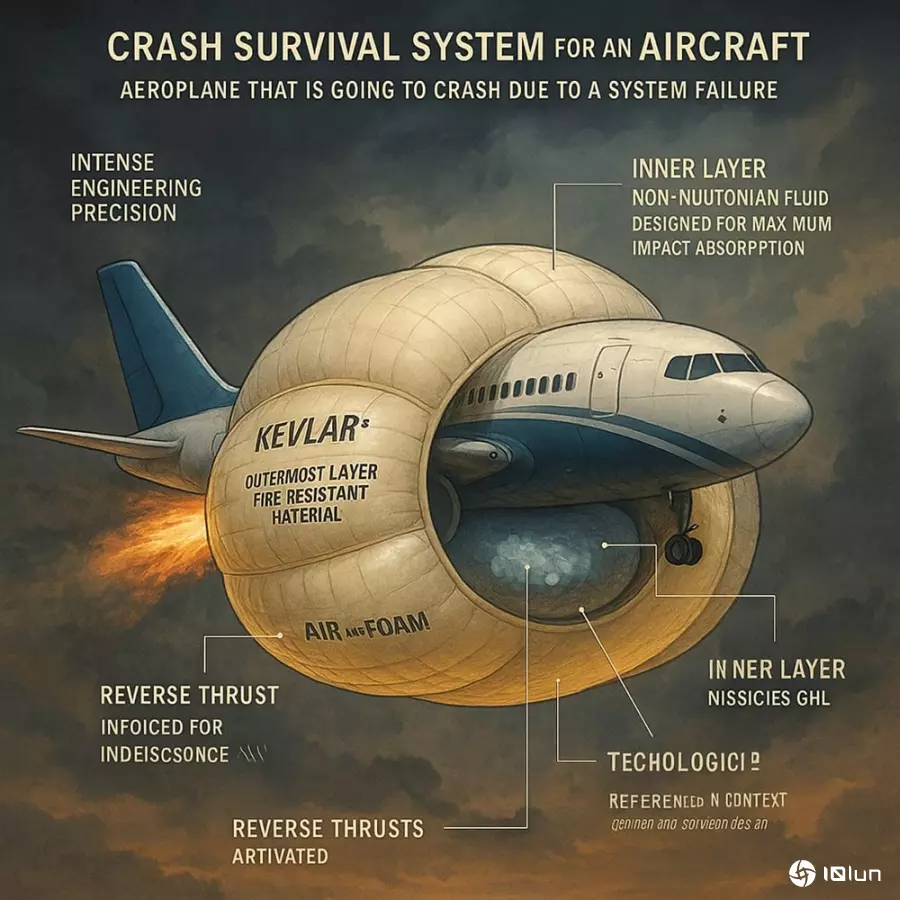 一旦触发,多层布料气囊会在2秒内从机头、机腹、机尾弹出,将整架飞机包覆得像“膨胀的爆米花”;同时,反推力系统或气体推进器协助减缓下降速度8-20%,机舱内的特殊液体则在撞击瞬间硬化,减少乘客伤害。机长在系统启动后仍可选择终止程序。