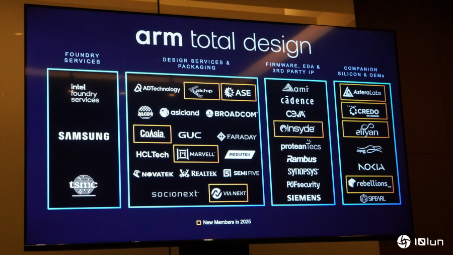 Arm全面设计生态系统集结众多产业领导者,2025年还有10位新成员加入(黄框标示者)。