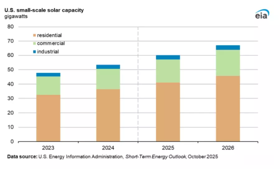 EIA指出,住宅屋顶型太阳能将占小型系统设备容量的68%,总设备容量预计2025年达60 GW,2026年提升至67 GW。 随着夏季发电高峰日益明显,太阳能在2025年5至9月的供电量将首次连续超越风力发电,成为夏季的主要电力来源。