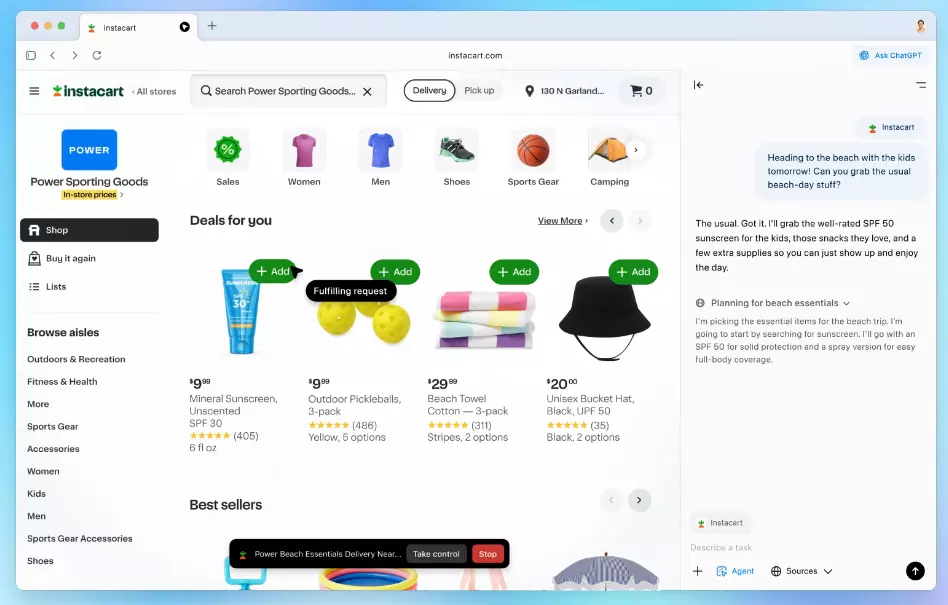ChatGPT Atlas中的ChatGPT功能与平常差不多,免费版与Go版用户可以用它来聊天、协助阅读、解释、翻译、摘要或整理页面内容,也能进行基本搜索;而Plus版及Pro版用户除了上述之外,还可测试Agent Mode功能,在浏览器中要求代理人执行各种任务,例如跨站搜索并比较产品,自动生成报告与摘要,以及理解及操作动态内容等。