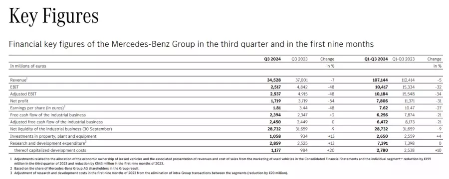 财报显示,奔驰旗下主力的汽车业务第三季经调整EBIT(息税前获利)较去年同期锐减64%,销售利润率(RoS)从一年前的12.4%大幅降至4.7%,创疫后新低。