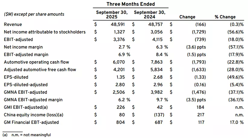华尔街日报、CNBC等外媒报道,通用汽车21日公布,第三季营收为485.9亿美元,大幅优于LSEG统计的分析师预估值452.7亿美元,每股盈余为2.80美元,优于分析师预估的2.31美元。经调整EBIT(息税前利润)为33.8亿美元,优于分析师预期的27.2亿美元。