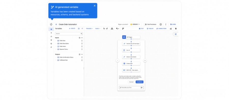 另外,Apigee API应用程序集成工具,则是一个集成平台即服务(iPaaS),方便用户通过可视化点击配置连接应用程序,而现在此工具提供一个接口,让用户能直觉地以自然语言描述创建集成流程,由Duet AI根据需求和企业资产,自动建议合适的集成流程。