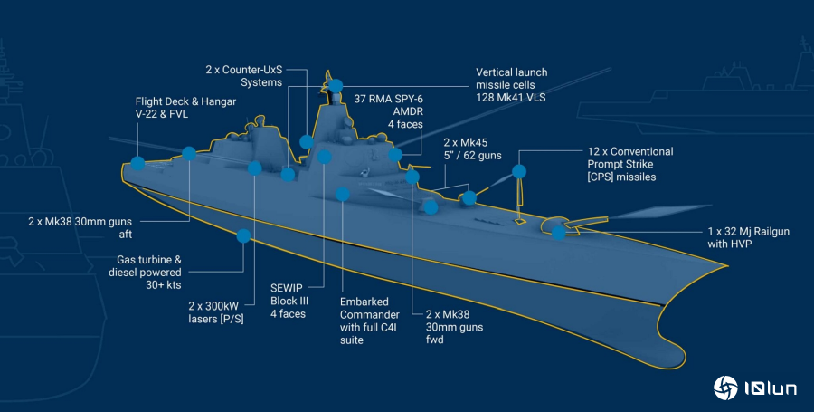 川普级战舰主要武器有: