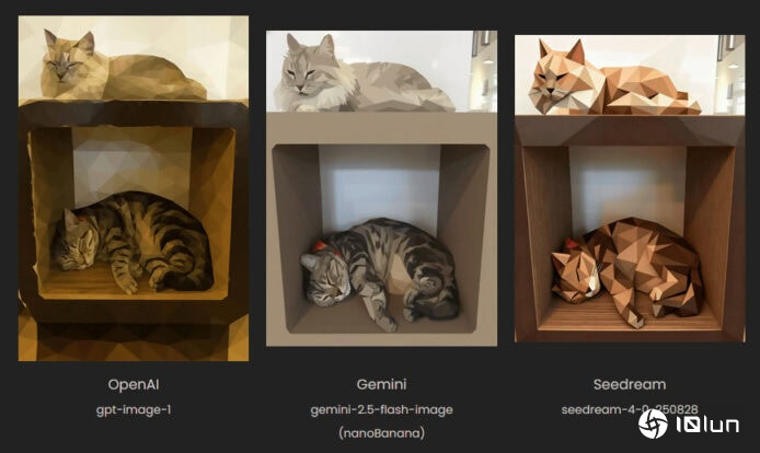 “转换为低多边形艺术”(Transform into low poly art) 指令下,seedream-4-0-250828呈现出最优秀效果。