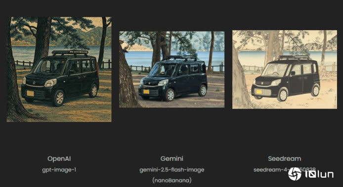 LateNiteSoft选用5张不同类型的测试照片,包括宠物、人像、风景、汽车及产品摄影,并以多种编辑指令测试3款AI模型。测试对象包括OpenAI的gpt-image-1、Google的gemini-2.5-flash-image (又称Nano Banana) 及ByteDance的seedream-4-0-250828。测试于2025年10月8日在日本进行,使用公称10Gbps光纤网络连接。