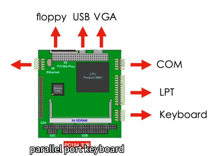 主板采用双层PCB设计,尺寸仅如信用卡大小,板上集成了基本Super I/O芯片(负责键盘和串行端口)以及VGA控制器。显示屏是从旧款手提DVD播放器拆出的5.6英寸480p彩色LCD屏幕,保持了4:3屏幕比例,符合当年的视觉规格。