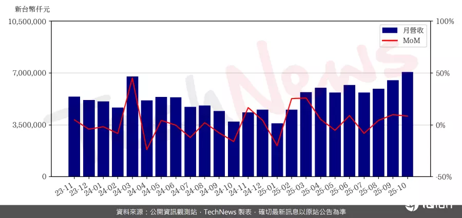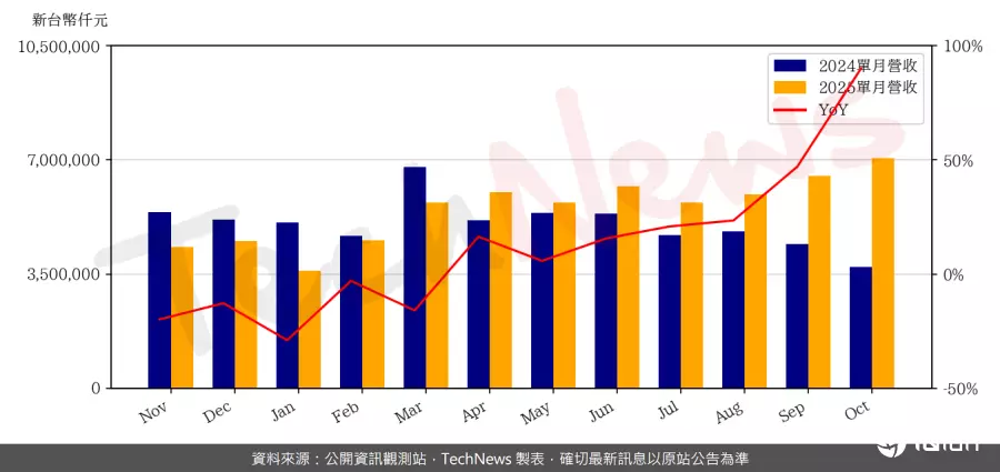 另外,群联也公布10月份总营收,金额为新台币70.65亿元,较9月份增长率达8%,较2024年同期增长率达90%。其中10月份PCIe SSD控制芯片总出货量年增长率达280%。年度累积至10月份营收为新台币569.31亿元,较2024年同期增加达14%,为历史同期新高。