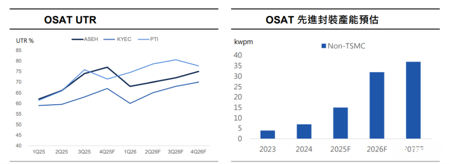 - OSAT产能飙升:OSAT端的CoWoS扩产将在2026年进入增长加速期。日月光投控的先进封装产能预计将由2025年底的5 Kwpm,快速增长至2026年底的20 Kwpm。