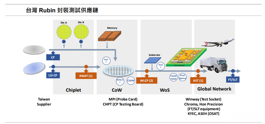 在致茂方面,受益于SLT设备升级(Rubin机台ASP预计提升33%),以及Metrology(探针针痕机)设备逐步导入境内芯片代工厂和OSAT的先进封装新建产线。最后在颖崴部分,受益于大尺寸封装测试座需求,其测试座在NVIDIA AI GPU的领导地位稳固。
