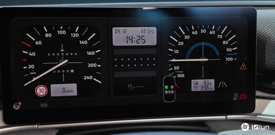 不仅音乐复古,连仪表板都跟着变成超怀旧的指标式速度表,电量显示也改成像油表的风格呈现,就连里程计数、电子时速也都还原上个世纪的风格,细节做好做满。
