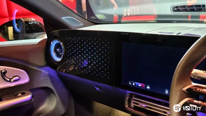 车厢配备10.25英寸仪表板和14英寸中央显示器,采用LCD技术。饰板上的星形图案延续了玻璃效果,而圆形空调出风口则增添了现代感与动感。可选配的抬头显示器可在车辆前方约2.8米处,显示一个浮动的12.2英寸虚拟形象。车内气氛灯提供64种颜色、10种色彩设置与20种亮度级别。另外,车主可选配Burmester 3D环回音响系统,它包含16个音箱与850瓦的扬声器,并支持Dolby Atmos。标准配备的SoundExperience功能,则可设置个性化的声音,提供“Silver Waves”与“Vivid Flux”等多种音效选择。