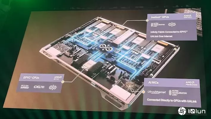 Papermaster表示,如果抽出其中一个模块单位,可看到里面有许多的开放标准,如EPYC CPU通过PCIe 6.0连接周边设备;CXL扩展界面;通过Infinity Fabric实现CPU与GPU间的直连传输;GPU之间使用UA Link连接;Scale-Up通过UA Link over Ethernet实现;管理模块采用DC-SCM(硬件系统模块化的一部分)。