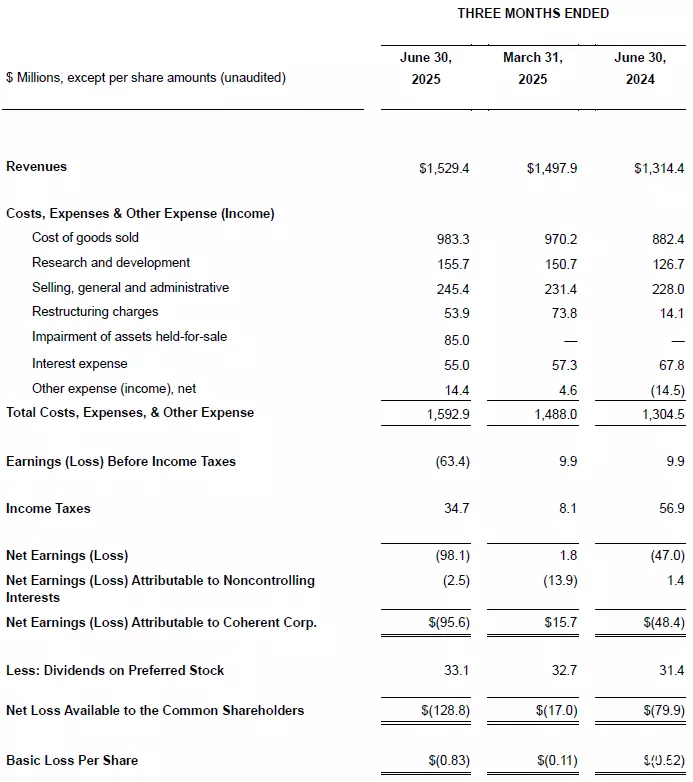 Barron's、Seeking Alpha报道,Coherent 13日美股盘后公布第四季(4-6月)财报:营收年增16%至15.3亿美元;经调整的非一般公认会计原则(non-GAAP)每股盈余为1美元,高于去年同期的0.51美元;non-GAAP毛利率为38.1%,高于去年同期的35.9%。根据FactSet调查,分析师原本预估Q2营收、non-GAAP每股盈余应为15.1亿美元、0.92美元。