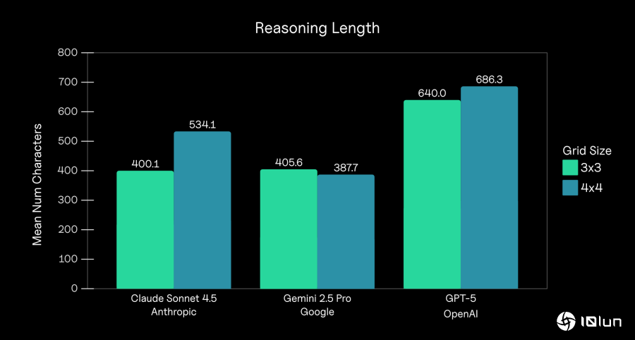 按模型和网格大小划分的平均“思考 (Thinking)”字符数(静态和重新加载CAPTCHA为3x3,跨格CAPTCHA为4x4)。在每个代理步骤中,模型都会输出一个“思考”标签及其对将采取哪些行动的推理。