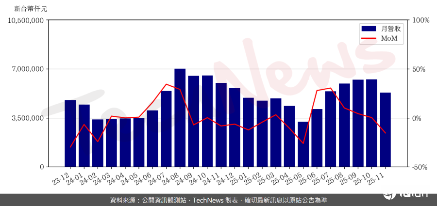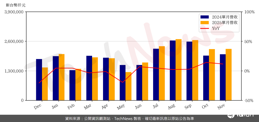 光学镜头双雄11月营收出炉,大立光11月总营收年减12%,预估12月运营维持与11月相当动能;玉晶光11月营收年增11.64%,12月需求较去年旺盛,估2025年营收将优于去年。