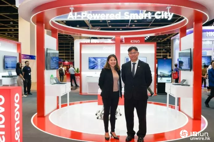 LPS公共与金融服务主管黄璇Jeanie Wong(左)向记者介绍Lenovo的AI应用如何延伸至智能产业,而LPS技术基础设施服务主管曾炎焜Jimmy Tsang(右)介绍Lenovo Hybrid AI如何推动香港成为资讯安全更强的国际城市