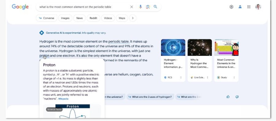 Google以生成式AI技术来改善搜索的第一项功能,就是允许用户以自然语言进行搜索,并提供来自生成式AI的回应,该回应已自动归纳网页内容,仅呈现关键资讯,而本周添加的功能则是针对该回应中的特定文本嵌入定义。用户只要将鼠标移到下方有蓝色虚线的文本,即可预览该文本的定义。