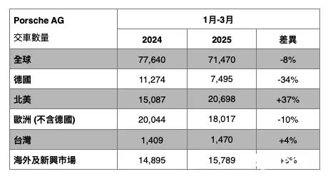 保时捷2025年第一季交车数量表。(Source:台湾保时捷提供)