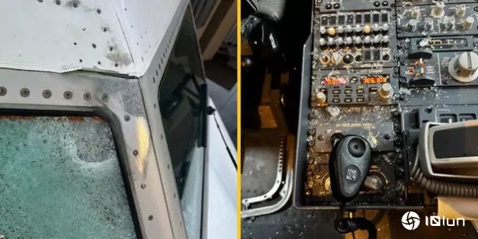 涉事航班为联合航空UA1093,事发时正巡航于犹他州摩押附近空域。乘客描述,事发时一名机舱服务员突然高声指示同事返回机尾并停止服务,随后机长通过广播宣布“飞机与某物体发生碰撞”。客机随即迅速下降10,000英尺,最终安全降落盐湖城国际机场。网上流传的照片显示驾驶舱内布满玻璃碎片,机长前臂有明显割伤及瘀伤。