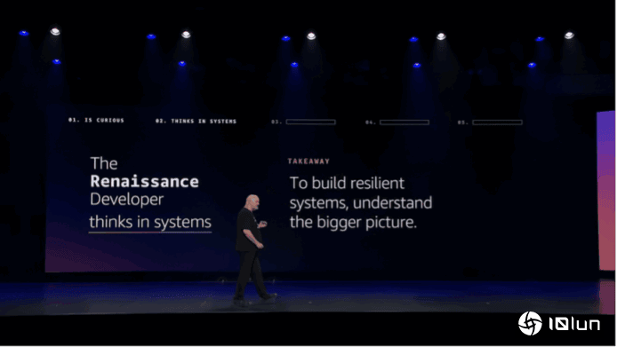Amazon创办人Jeff Bezos曾指我们正处于太空、AI、生物科技多个黄金时代交汇点。Werner认为这AI时代与其比喻为“革命”,不如视为文艺复兴。如同达文西与米高安哲罗,现代开发者不应只是写程序,而应是创造解决方案的博学者。他回顾自己从68000汇编语言到COBOL、PASCAL的旅程,并非怀旧,而是提醒业界语言会过时,惟思维不会。