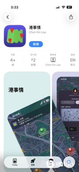 Kinson于12月31日在社交平台指出,香港看似先进,但资讯流通不算理想。任何人遇到突发事件,只要在“港事情”标记,所有用户就会收到推送通知。应用程序支持报告火警、交通事故、自然灾害及公共安全事件等类别。