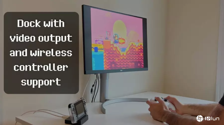 玩家还可搭配扩展底座将游戏画面发送至外置屏幕,并搭配无线手柄操作游戏。