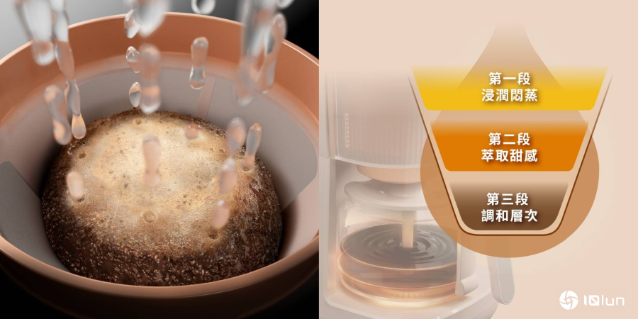 在核心的冲煮技术方面,飞利浦手冲冷萃美式咖啡机HD7997针对研磨与注水系统进行了调整。有别于市面上常见的3段研磨设置,此机型配置了9段研磨选项,用户可根据浅、中、深焙不同的咖啡豆特性,调整出相对应的咖啡粉粗细度。在注水程序上,采用了分段注水技术,试图模拟人工手冲的绕圈手法。系统运行时会先进行第一段注水,浸润咖啡粉以进行闷蒸;接着第二段注水进行主要萃取;最后第三段注水则用于调和整体浓度。此外,机器采用多孔雨林式注水设计,目的在于让水分能均匀浸润粉层,避免水分过度集中于单一点而影响萃取均匀度。壶身内部则导入了Swirl Aroma导流技术,通过液体循环达到搅拌效果,使壶内咖啡浓度与香气维持一致。