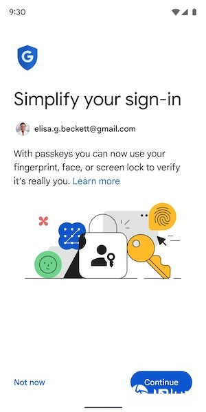 Google鼓励你开始使用密码密钥(Passkey)作为主要登录选项,它是一种快速、安全、免密码的登录方法,以取代传统的密码输入。