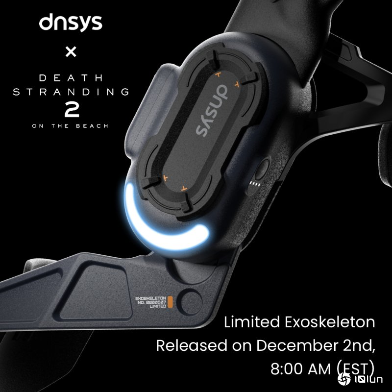 外骨骼研发制造商DNSYS于11月10日宣布,将与小岛工作室合作,推出以旗下外骨骼产品“DNSYS Z1”为基础、人气游戏《死亡搁浅2:冥滩之上》为主题的联名产品“DNSYS Z1 Exoskeleton Pro – DEATH STRANDING 2: ON THE BEACH Edition”,12月2日上市。