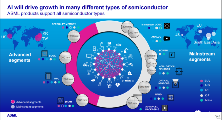 整体来说,ASML的高数值孔径EUV(HNA)正迅速从研发走向商业化,提供了更高的效率和先进的图案化能力。然而,深紫外光(DUV)技术因其庞大的产能占比和成本效益,在芯片制造流程中仍然扮演着不可或缺的多数角色。半导体制造业正处于EUV引领极致微缩,同时DUV承担大量生产的双轨并行阶段。