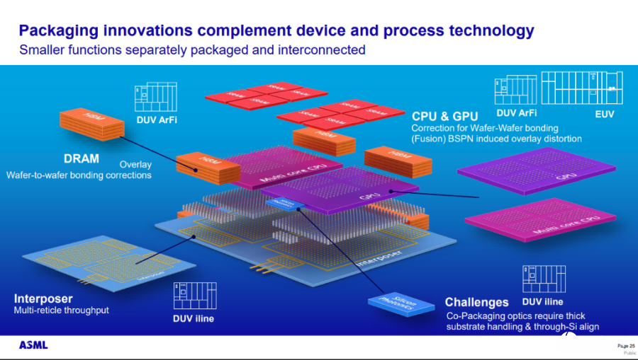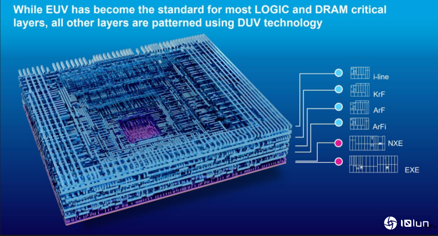 ASML强调,DUV与EUV在实际生产中需要相互配合。一片逻辑芯片大约需要进行70次左右的曝光,其中可能十几片使用EUV,而剩下的则使用DUV。因此,所有层次之间都需要进行精准的匹配(matching factor),这涉及到精确的套准(overlay),其精度皆以纳米为单位计算。无论是单机的套准(overlay)、机对机的套准,最终全部加总起来的结果就是产品上的套准(on product overlay),确保了芯片结构的精准叠加。