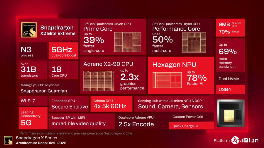 Qualcomm于Snapdragon Compute Architecture Deep Dive 2025活动中详细介绍为Windows操作系统设计的Snapdragon X 2系列SoC,我们先从平台功能切入,看看新一代产品具有哪些特色。