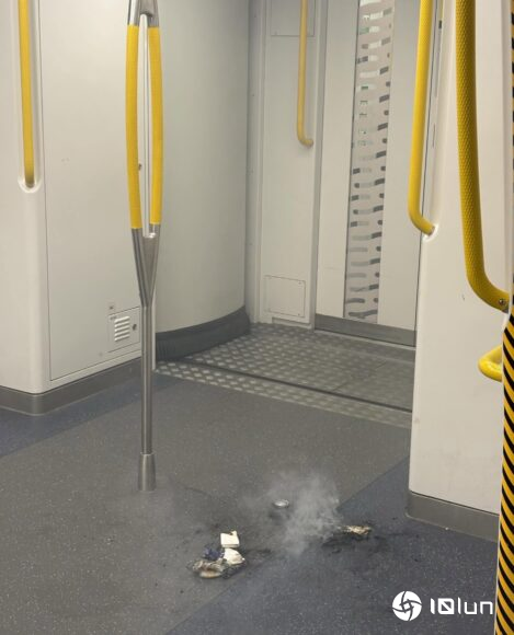 先前有女乘客在社交平台发布视频,指乘搭往乐富列车时突然闻到烧焦味,随后发现一名戴帽男乘客背囊起火。火光与浓烟一度充斥车厢,疑为背囊内外置充电器锂电池爆炸引致。该名女乘客表示,自己与起火背囊仅隔一块玻璃隔板,直言火势若再靠近便会烧到头发,形容情况非常惊险。网上流传片段显示,男乘客发现背囊起火后,不断在车厢地面摩擦背囊试图扑灭火种。期间有乘客大声提醒“个书包仲喺度着紧(那个书包还在烧)”,也有人质疑背囊烧穿后事主仍未即时发现。