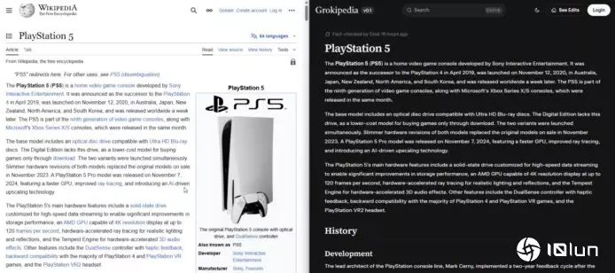 不过有网络用户发现Grokipedia许多样目内容与知名的维基百科高度相似,甚至出现直接复制改写情况。这些条目均会在末尾附有免责声明,说明部分内容改编自维基百科。Grokipedia与维基百科的最大分别是用户不能自行编辑条目,仅能报告数据错误并提供修改建议。此举令外界质疑该平台是否真能解决维基百科的偏见和准确性问题。