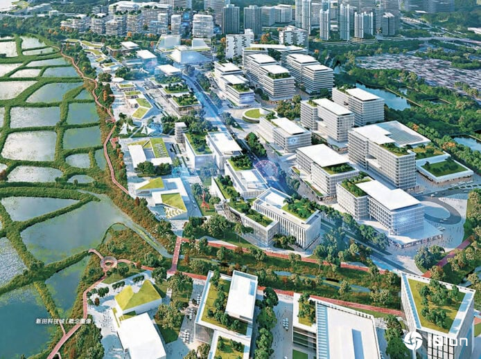 新田科技城将重点支持生命健康科技、人工智能与机器人、微电子与智能设备、新能源、新材料及环保科技等策略性创科产业,以先进制造为核心推动产业发展。用地布局以“三个枢纽、三个产业发展带”划分,即由北至南河套枢纽、洲头枢纽及麒麟枢纽,配合生命健康科技发展带、人工智能与机器人发展带及微电子与先进产业发展带。