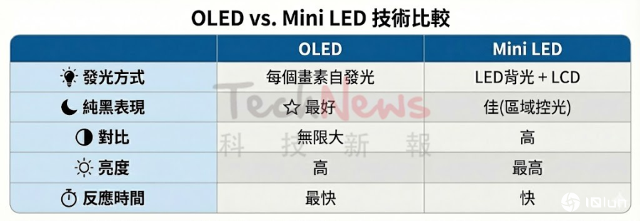 此外,过去被普遍认为是Mini LED面对OLED的唯一优势,也就是峰值亮度,近来也开始受到质疑。有媒体指出,在个人计算机上一味追求高亮度,是否真有必要,仍有讨论空间。相较于智能手机,越来越偏向生产力工具的个人计算机,实际在户外使用的机率并不高,因此未必须持续追求超高亮度;即便是在电竞机型上,高亮度看似合理,但实际上电竞使用场景多半为追求沉浸感,环境光源反而偏暗,更缺乏追求极高亮度的必要性。