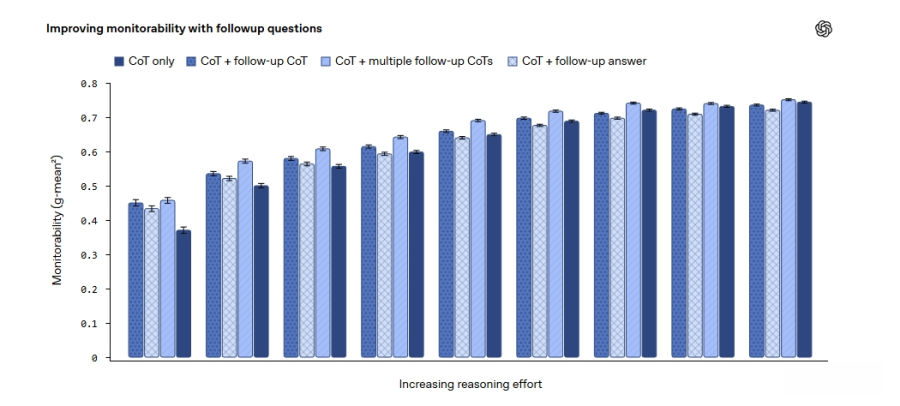 过去我们评估AI是否安全,多半是看它的回答或行动(Actions)是否合规。但OpenAI研究发现,对于具备推理能力的模型来说,监控它的“思维链(CoT)”——也就是AI在产出答案前的思考过程,效果远比只看结果好得多。