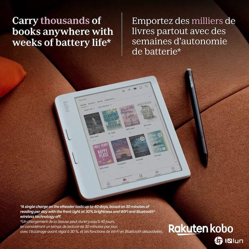 乐天Kobo称Kobo Libra COLOUR电池续航力最长可达 40天(以每天阅读30分钟、前灯亮度30%、Wi-Fi和蓝牙皆关闭的测试情况下),凸显E Ink电子纸的超低功耗特性,一旦显示内容可在不消耗电力继续显示。
