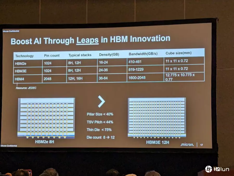 事实上,一片12英寸的芯片厚度约为775微米,而HBM3或HBM4单层芯片的厚度,甚至不到其百分之一。因此,根据物理定律,当厚度减半时,应力会增加八倍。若将厚度缩减至原来的二十分之一,所产生的应力将会是惊人的8,000倍。因此,处理这种极薄、极脆弱的芯片,就像在纸片上进行精密的建筑工程,但这也为产业带来了巨大的技术创新机会。从HBM2E到HBM3,接点间距(pitch)缩小了超过一半,而TSV(硅穿孔)的数量则增加了四倍。这些数据的背后,是AI性能得以飞跃式进展的根本原因,同时也给封装工程师带来了极其艰巨的“肮脏活”(dirty job)。