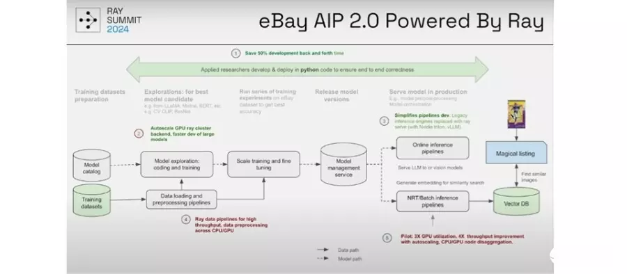 提升AI开发效率、硬件调度效率及整体可运用硬件数量,使eBay在2024年不只推出新模型,也用生成式AI提升平台上不同作业流程,更能上线了许多生成式AI应用。