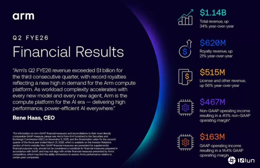 Arm第二季版权费收入增长21%,达到6.2亿美元。该公司表示,其智能手机、数据中心与汽车等所有目标市场均呈现增长。此外,第二季授权收入大增56%,达到5.15亿美元,这主要是归功于高价值合约的签订时间。